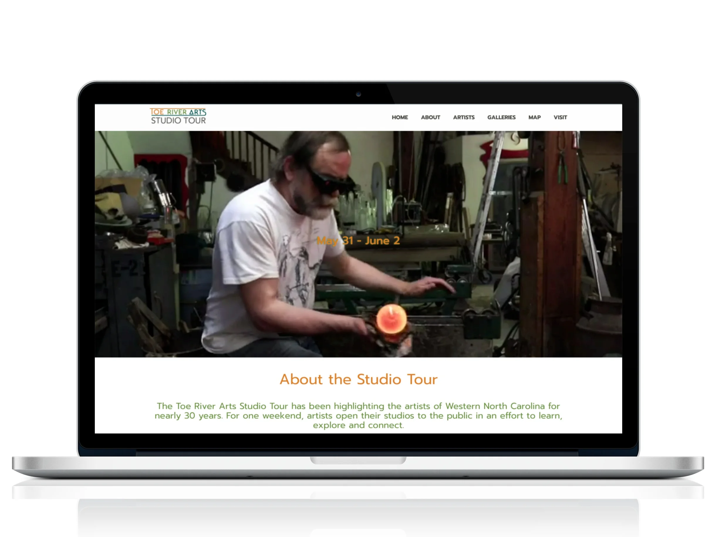 I have always had a passion for local art, so when it came time to choose my master’s capstone project, I was drawn to the local arts council in my home town — Toe River Arts. Each year, twice a year, Toe River Arts hosts the Studio Tour — one weekend where artists open their studios to the public so they can learn and connect. Using many different mediums and tools, I created a multimedia website that houses all of the the information about the tour in one place.